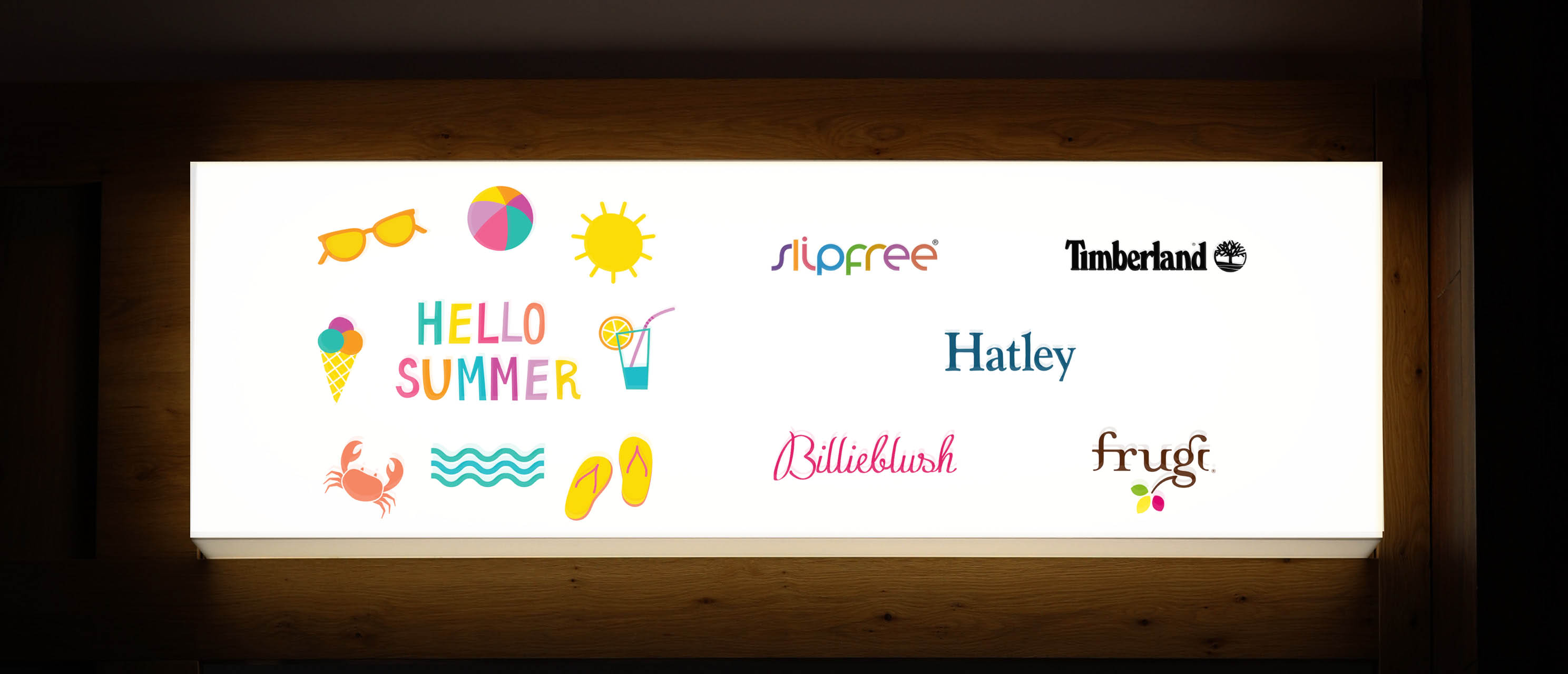 Below are some examples of work including designs for lightboxes, merchandising, swing tags